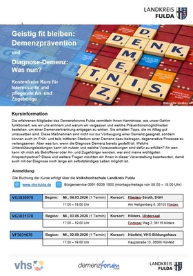 Mehr Informationen erhalten Sie auf dem Flyer oder buchen Sie direkt unter Startseite | VHS Landkreis Fulda.